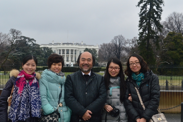 中国民办教育协会三美女同我们在白宫前合影