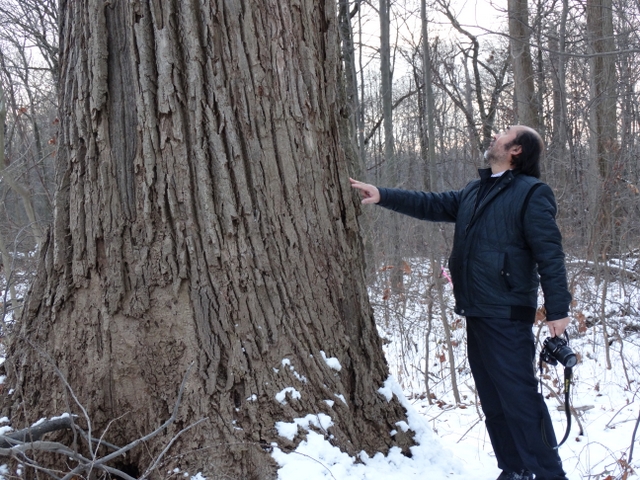 一棵大树倒下拦在了路上,为路通,锯下中间一节,可见美国森林之广木材之多
