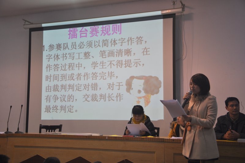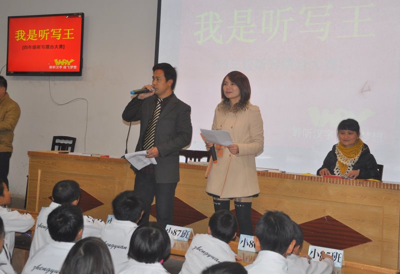 经过前段时间的初赛,每班推选出3人参加本次复赛。比赛听写内容一半为课内词语,一半为课外词语。每个词语由主持人报听二遍,词语解释一遍。选手可提合理要求一次。比赛选手必须按胸牌号依次答题,答题时间为30秒,答错或超时的选手直接淘汰出局。