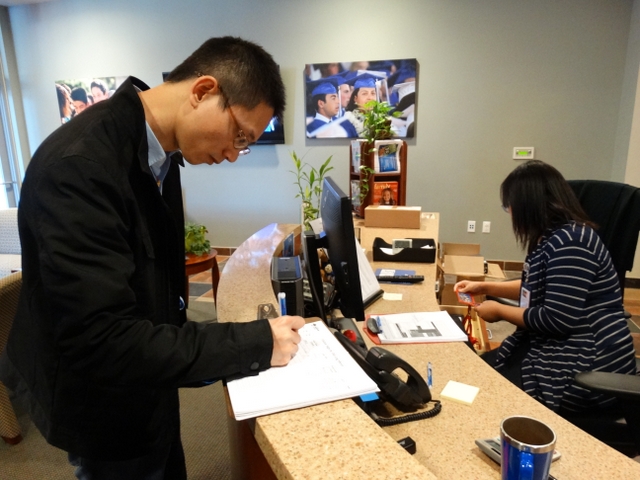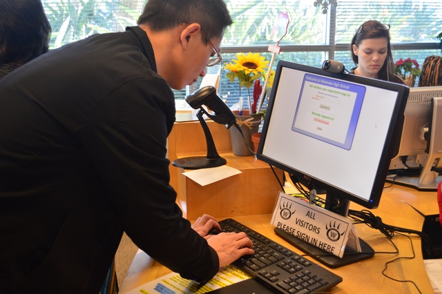 例行登记,电脑上方的摄像头记录了来访的每一个人的头像信息。