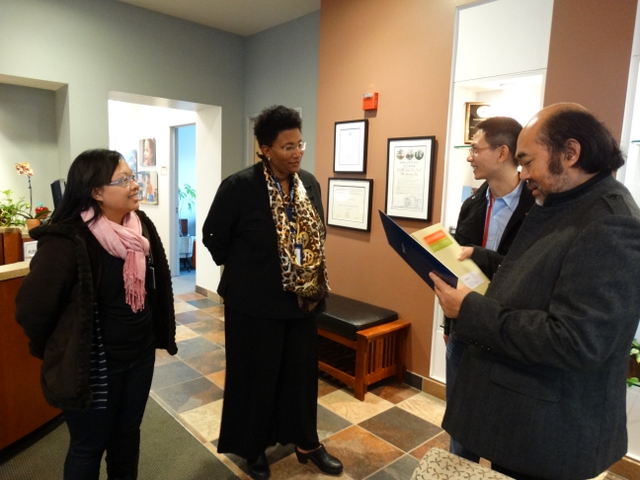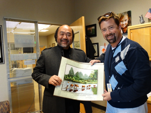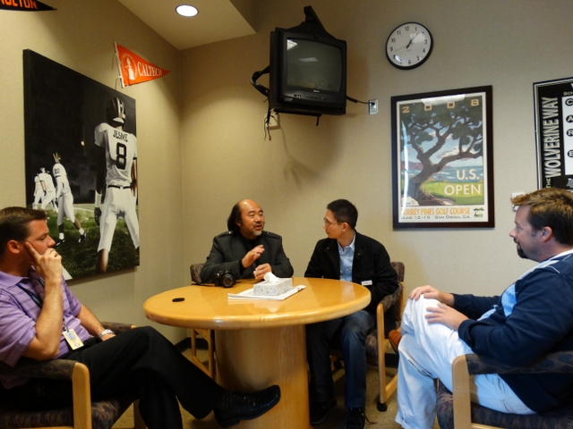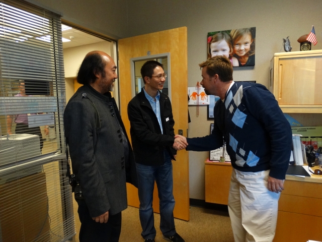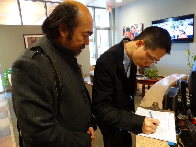 又是半个小时的交流,谈得很到位很开心,宾主不时爆发出爽朗的欢笑,左边为校长助理