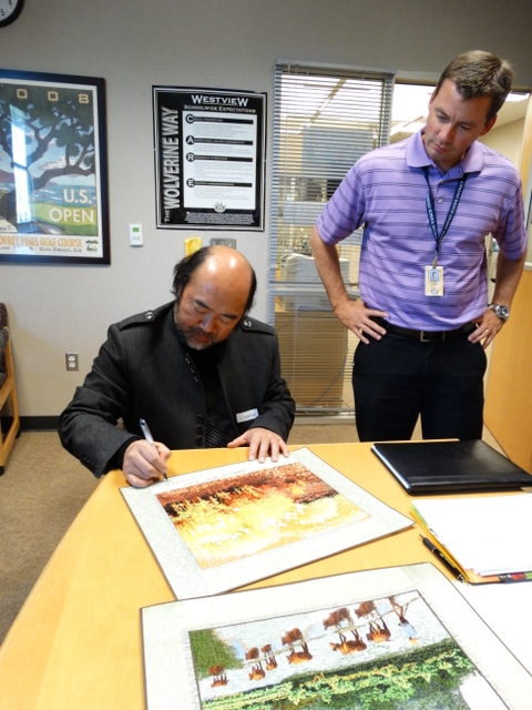 罗校长在West View 学校校长室门口