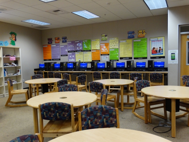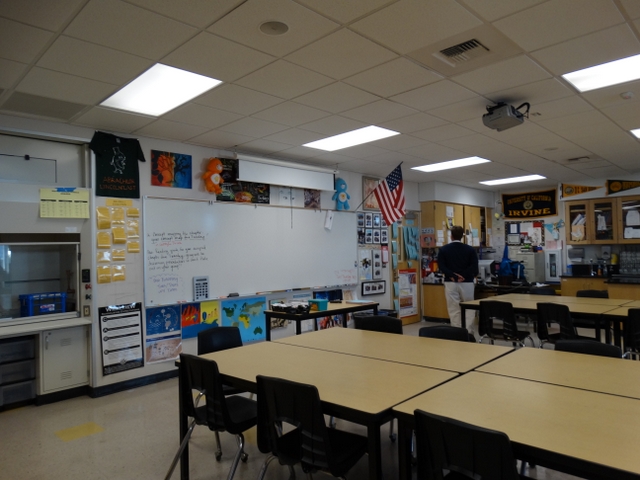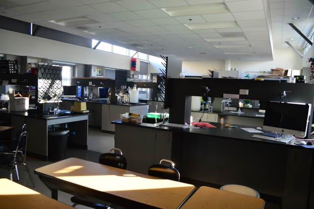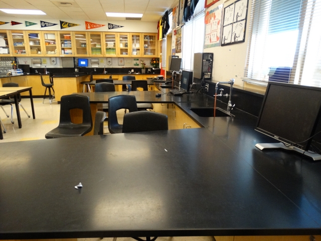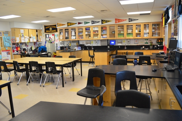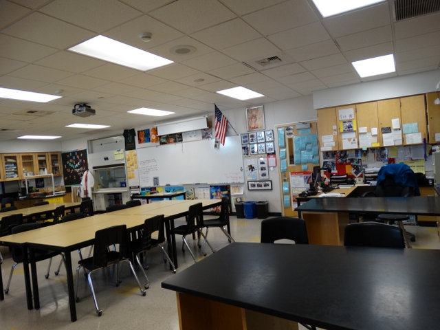 美国学校的教室都是“学科教室”,使得教室功能化。图片显示的是科学教室。