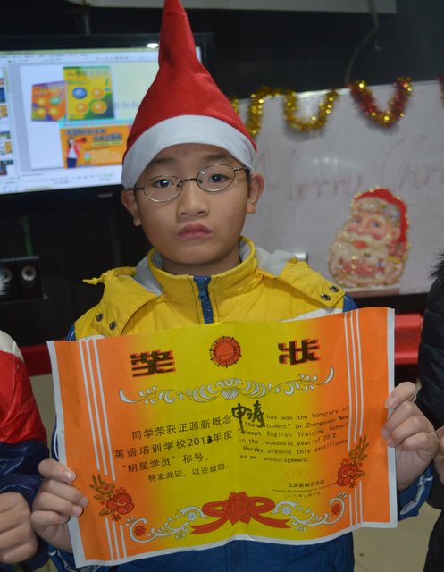 圣诞节悄然而至,12月22日上午9点整,本学年暖暖的圣诞Party在正源学校新概念英语培训中心拉开帷幕。所有学员及其家长参与这次活动。伴随欢快的圣诞音乐响起,主持人以一口流利漂亮的英语宣布Party开始,在简单的热身互动后,培训部主任刘静老师就培训中心的创办经历、理念、所用教材、师资情况作了简短介绍,并且与家长和学员探讨了学生平时如何养成良好的英语学习习惯等问题。之后各班学员在其英语老师的指挥下,在各班教室有序开展趣味性英语游戏及才艺表演,展示他们这一学期来的学习成果,并给优秀学员颁奖。老师们同学员家长做了详细沟通。最后,所有学员都参与抽奖、合影活动,一起分享圣诞糖果。Party在一片欢乐声中画下完美句号。