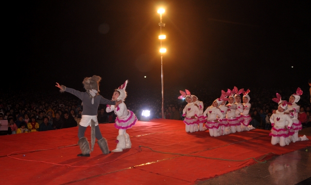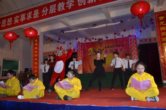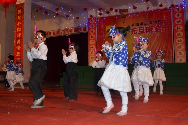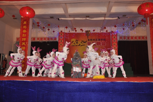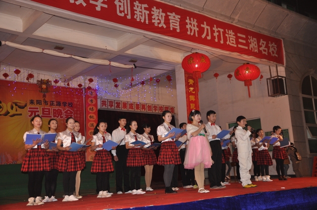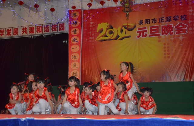 在罗校长的简单致辞后,晚会在雄壮的音乐序曲中拉开帷幕。顿时,舞台前的一炷炷烟花迸发出耀眼光芒,五彩缤纷,美丽绚烂。首先上场的是“龙狮·武术”节目,一条金龙舞出各种造型,让人目不暇接;两头雄狮跃上飞下,身姿矫健;长棍班棍到地裂,大刀班刀飞眼迷。更有拳术班,男生女生个个英姿飒爽,人人身手敏捷,出拳有千钧之力,跺脚如霹雳有声。双簧《贺新年》惟妙惟肖,让人忍俊不禁;古筝《渔舟唱晚》清韵悠长,余音绕梁;舞蹈《桃夭》清新靓丽,风姿卓雅;校园情景剧《为了谁》再现人民教师学生至上、公而忘私的高尚情操催人泪下;小学一年级的舞蹈《我很喜欢你》把孩童们的天真、稚气表现得淋漓尽致,小学三年级的舞蹈《兔子扬眉》则把一群机灵、智慧,智擒大灰狼的全新的兔子形象展现在观众面前。校园小品《正源超级中学生》、英语话剧《Enjoy English enjoy myself》、朗诵《正源,我们的家》等节目,热情讴歌了正源学校良好的学生精神风貌,优异的办学业绩,广泛的社会影响,以及学生们对学校的感激和赞美之情。