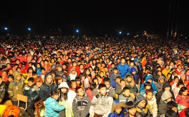 12月28日晚,学校广场人头攒动,一万四千多名学生和教职员工齐聚一堂,喜迎元旦,隆重而热烈的文艺晚会在这里举行。