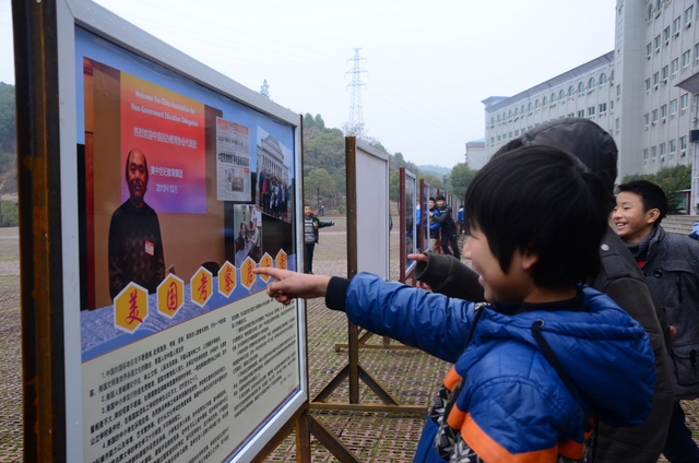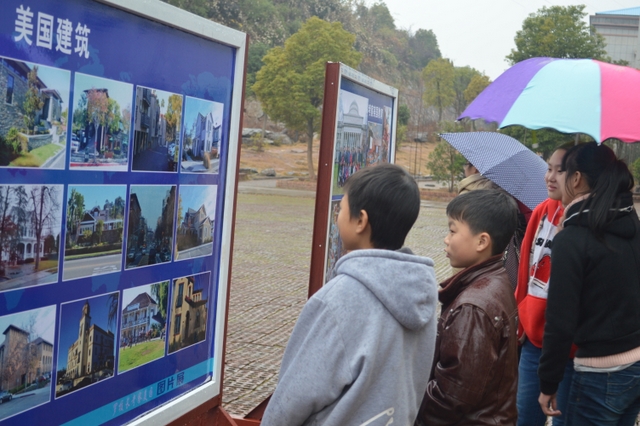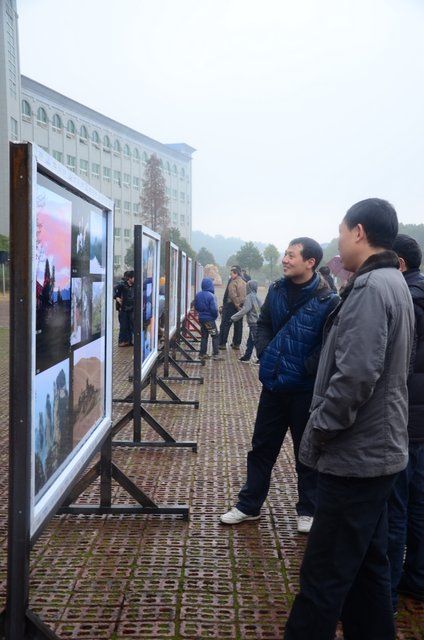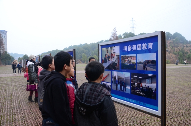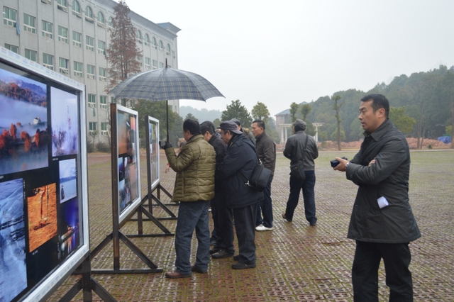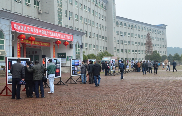 2014年1月11日,耒阳市摄影家协会2013年年会在我校举行。会前,大家在学校广场观看了会员作品展览及罗湘云校长考察美国活动图片展览。