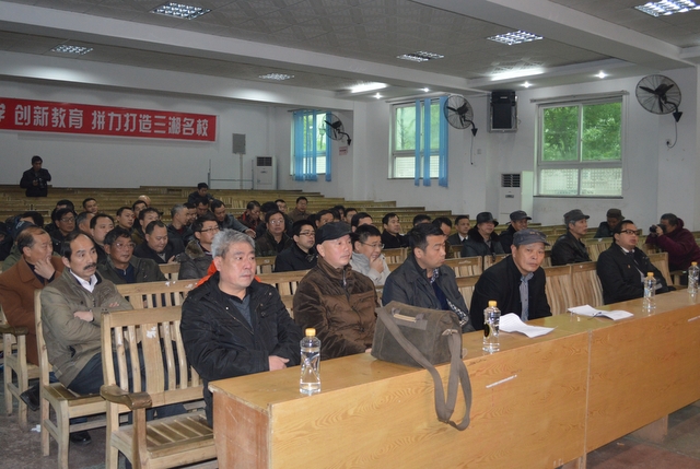 在主席台就座从左至右罗湘云校长(协会副主席)、熊艾春主席、曾启武主席、罗秋生副局长、肖希求书记、陈月新名誉主席