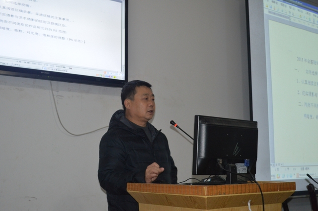 市文联主席熊艾春、书记肖希求,市文广新局副局长罗秋生,以及市摄影家协会主席曾启武、名誉主席陈月新、副主席罗湘云、副主席兼秘书长王英林在主席台就座。会议由王英林主持,曾启武主席作主题报告。会上宣读了2013年优秀会员表彰决定,罗校长等11位优秀会员受到表彰。增选杨敬忠、梁晓琼二位为理事会新成员