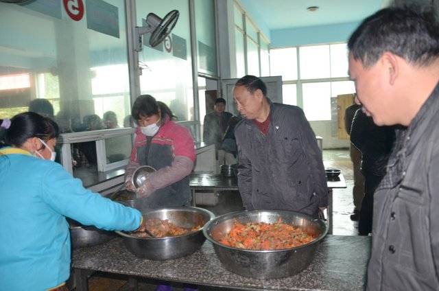 集团董事长曹建军一行5人,在衡阳市教育局省督学文亚杰,耒阳市政府教育督导室主任龙海飞等人引导下,参观了校园、食堂,并在食堂进餐,品尝菜肴,对食堂的管理理念、采购方式、食品自制和精湛厨艺表示推崇。