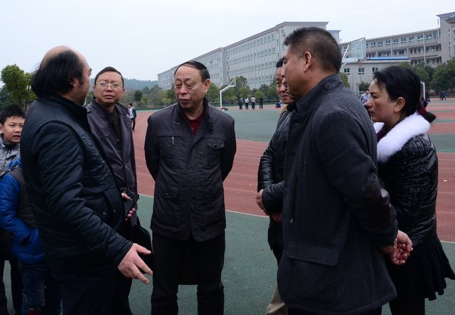 耒阳市政府教育督导室主任龙海飞(左一)