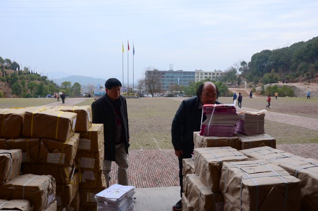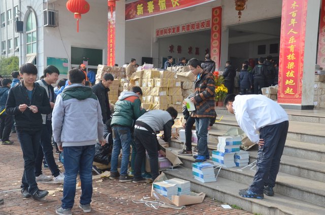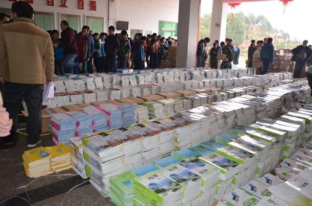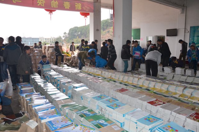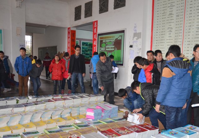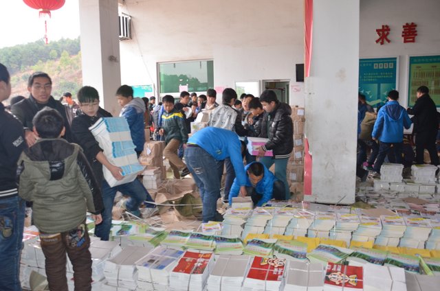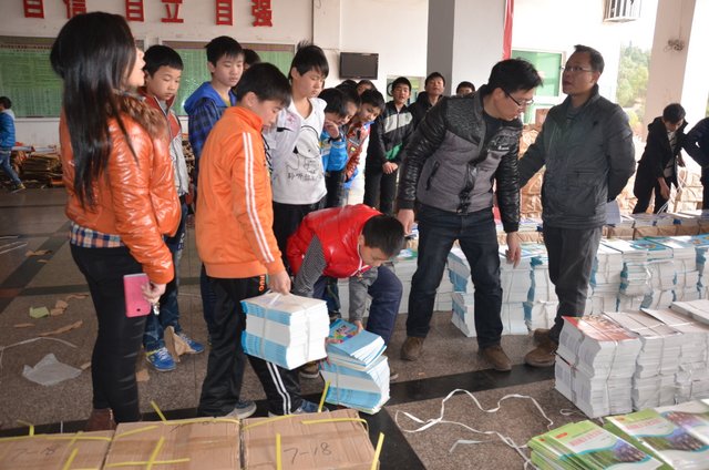 开学已有近一个星期,初中部和小学部的同学们一直没有教材。通过多方努力,今天,终于从新华书店运回了课本,并及时发放到了学生手中。同学们领到课本,一个个喜笑颜开,像得到心爱的礼物,爱不释手,马上就兴致勃勃地翻阅起来。