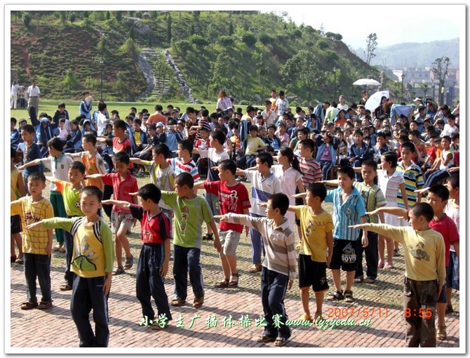2007年5月11号,小学部全体师生在学校广场举行了广播体操比赛,同学们精神抖擞,动作规范,一点头,一伸手,一抬足,一弯腰都极其到位。同学们认为,这次比赛既锻炼了身体,又增加了班集体凝聚力。