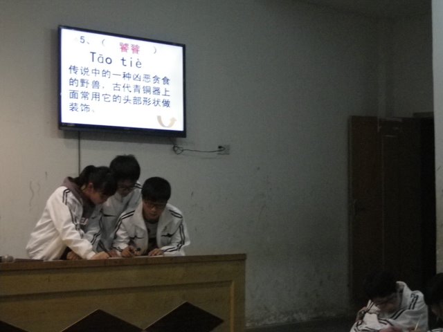 在前几场预赛的基础上,今天的决赛更展示出同学们勇于创新、富于想象、思维敏捷、视野开阔的风采。第一个环节“学仓颉,造妙字”,一号队将“气”和“胆”组成上下结构,读“yíng”,意即有志气,有胆略,就能赢得人生;六号队将“成”和“石”组成上下结构,读“chéng”,意即要想成功必须打牢脚下的基石;七号队将“光”与“希”组成左右结构,读“xī”,意即光明即是希望……或用会意法,或用形声法,一看就懂,一读就会,不仅体现出同学们的造字能力,同时体现出同学们积极健康的心态、深刻透彻的感悟和努力进取的精神。