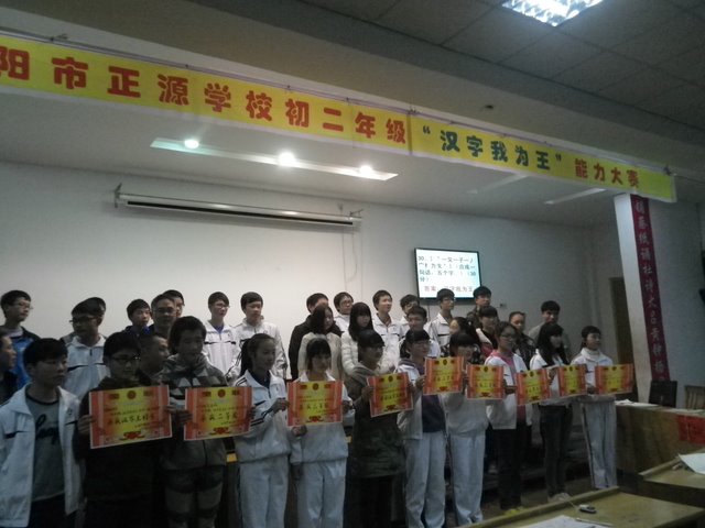 造字,解字,想象丰富,新颖独特;必答,抢答,紧张激烈,扣人心弦;字谜,词谜,峰回路转,妙趣横生;加分,扣分,此消彼长,胜败皆荣。3月22日晚上,初二年级“汉字我为王”决赛完美落幕。