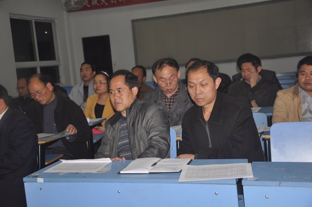 会议由高三年级主任吴甲文老师主持。他首先分析了高三年级各班参加衡阳市第二次联考的成绩数据,指出,在各位在座老师从准高一起,四年来兢兢业业、呕心沥血地努力之下,这届当年初一招生最没底气的高三毕业班终于取得了出人意料的可喜成绩:理科在耒阳市前13名中,仅第四名属于兄弟学校,文科在前十名中我校也占了三个席位。但是,现在还不是庆功的时候。我们必须始终保持清醒头脑,从继续保持衡阳市领先地位的高度来查找我们的不足,有的班级比预想要差。要坚定信心,有信心就有动力,有动力就有希望。他要求班主任要进一步强化学生周日半天假后的到位管理,要重视学生尤其是复读生和女生的心理辅导,学生的早锻炼和课间跑操不能削弱,晚自习后学生自发的跑步应提倡;任课教师上课之外要心无旁骛地备课、批改作业,要加强教学研究,搞好集体备课。