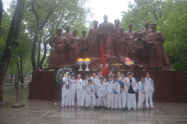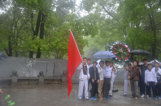 4月8日上午,我校初二年级部分班级400余人,在校团委书记周文根和初二年级主任徐作耘等人组织下,到距离学校三四公里的市烈士陵园举行清明节革命烈士祭扫活动。