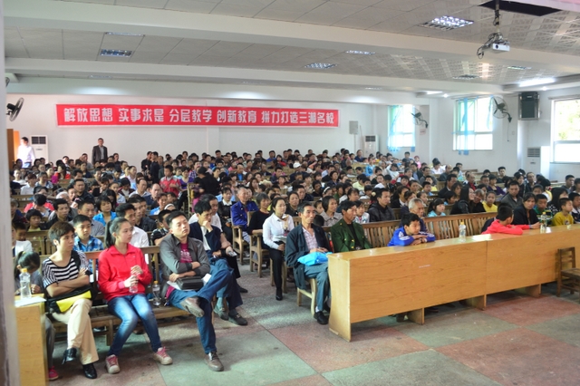 从全市各地前来参加会议的学生和家长让报告厅座无虚席。罗校长和初中部学部主任曾良古分别讲话,并回答了家长们提出的问题。
