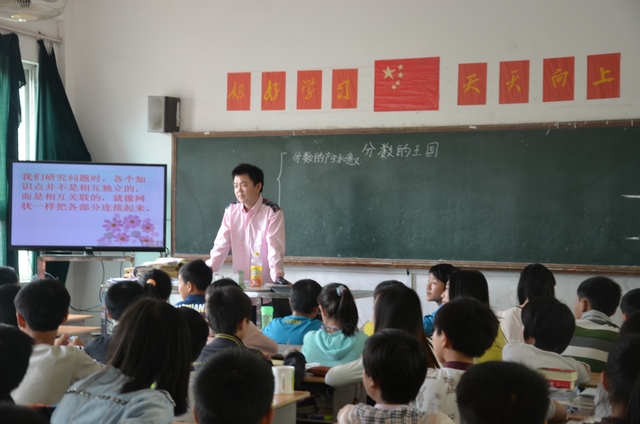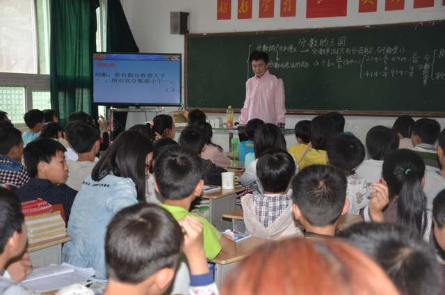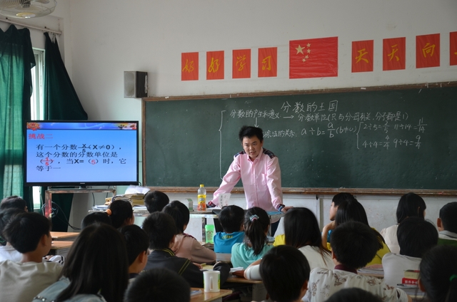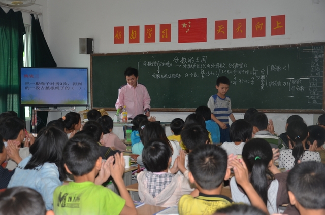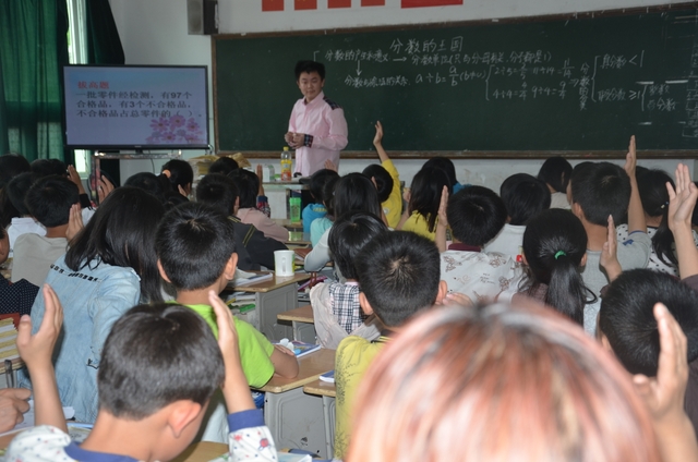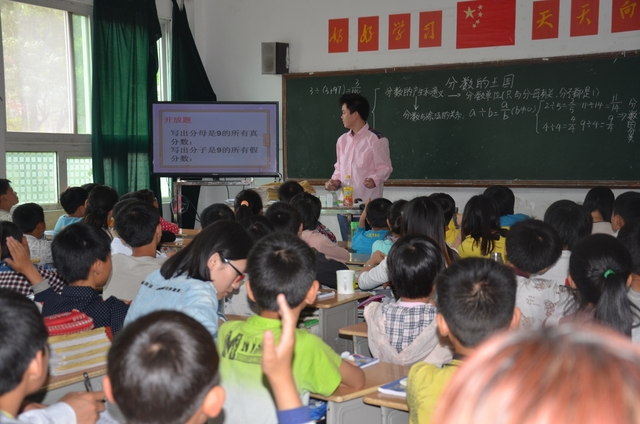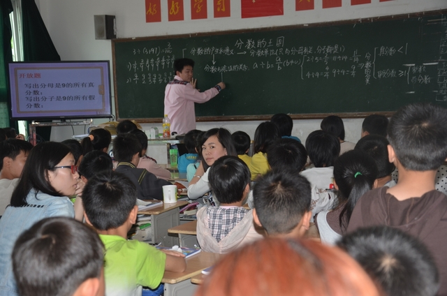 上午第四节课,邵子哲老师在五年级80班执教《分数的王国》一课。邵老师的讲课也精到老练,可圈可点。通过三次挑战和基础题、拔高题、开放题三个层级,一步一步开发学生智力,激发学生钻研兴趣。同学们一路收获鲜花、果实,不知不觉中到达本节课知识的制高点,学得轻松、愉快。
