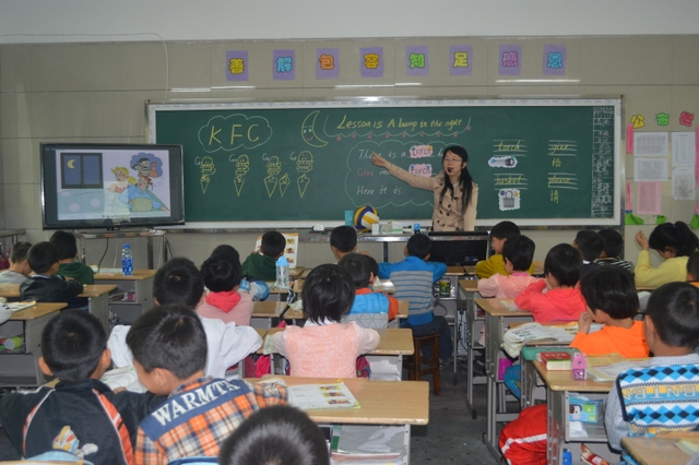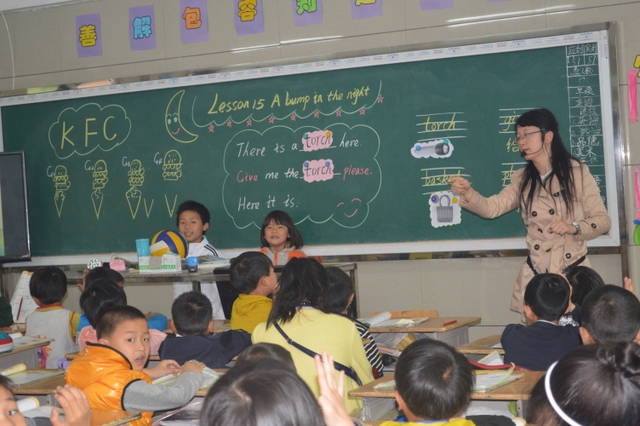 这节课的主题是青少年版新概念Lesson15----“A bump in the night”。雷老师展示的是课文的一段,四个新词,三个句型。精心的活动设计,丰富的肢体语言,有效的师生互动,活跃的课堂气氛,学生的积极参与,雷老师以她独特的亲和力和良好的专业技能博得学生和老师的一致好评。也给小学部英语老师提供了一个非常好的学习机会,为以后如何更好开展英语教研活动提供了经验。