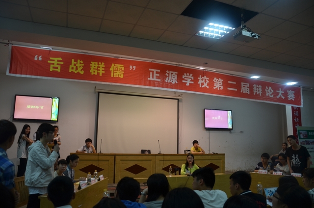 4月16日晚,“舌战群儒”杯决赛第二场辩论赛在报告厅举行。
