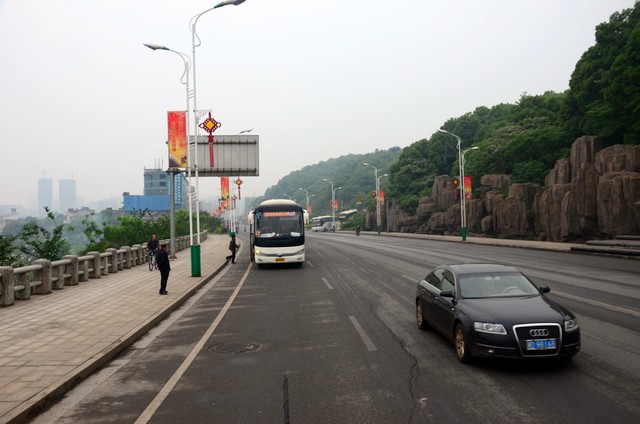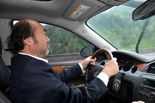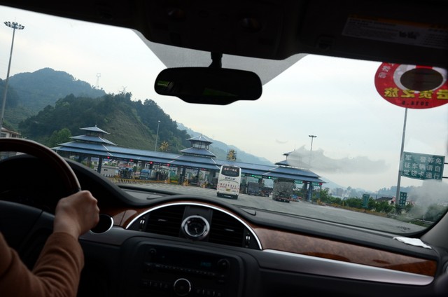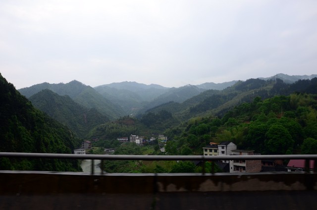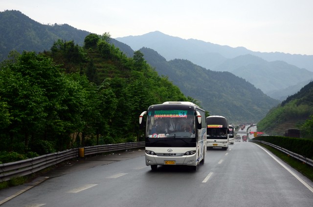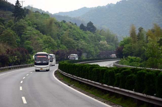 上午,一路细雨。马路如洗,草木如洗。连峦叠嶂,堆青耸翠,一树一树鲜花点缀其间,引人入胜。真个是车在画中行,人处仙境中。