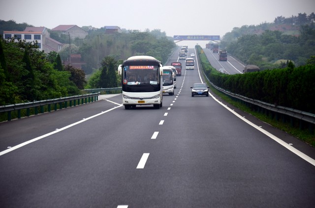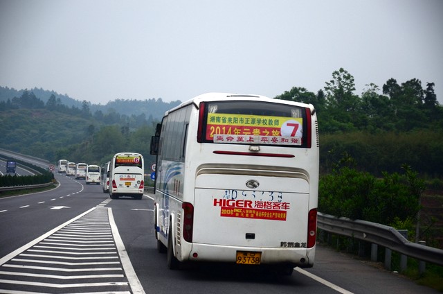 早上六七点钟,老师和部分随游家属、子女便陆陆续续赶到学校,吃完早餐。近八点,罗校长的越野车带队,七辆大巴紧随,载着290余名乘客,浩浩荡荡出发。经过联络线,约2公里,便驶上京珠高速。
