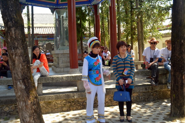 昨晚虽然都休息很晚,今天早上六点多钟,大家还是按时起床、吃早餐。七点二十分,启程赴大理。一路高速公路,不到四百公里路程,依然到中午十二点四十分才到达目的地。漫长的旅途,导游讲云南的历史、物产、资源、交通地位、风味小吃,讲大理白族人的服饰特点、婚嫁与丧葬习俗、姓氏规律,等等,时间倒也过得挺快。
