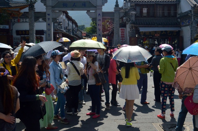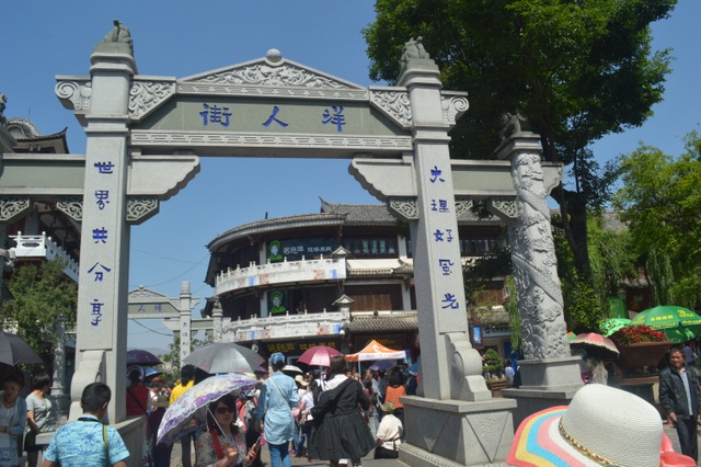 午饭后,游览“文献名邦”之都、几百年南诏国都城——大理古城。城墙巍峨厚重,城楼黄瓦飞檐,兵马都督府雕梁画栋,虽然大多是近些年修缮一新,却无不折射出历史的沧桑。蒋公祠、洋人街、唐朝酒吧处处留下昔日的辉煌。