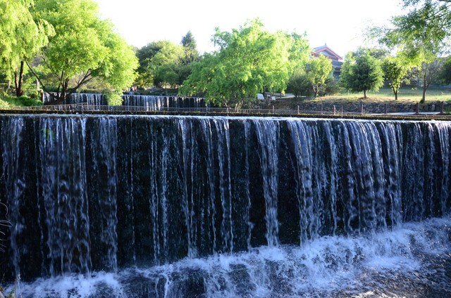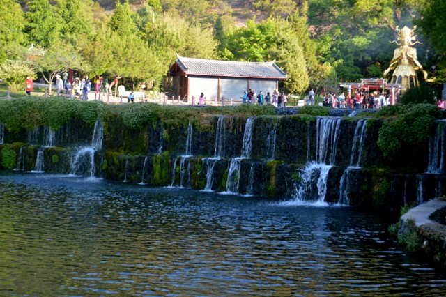 回到城里,忽然下起雨来,所幸天公作美,不是很大,时间也不长,我们冒雨游览了黑龙潭公园。晚饭后,雨完全停止,大家自由游览具有800多年历史、被誉为“东方威尼斯”的世界文化遗产——丽江古城四方街。古城河渠纵横,各河渠两边商铺林立,以民族服饰、银器、民族乐器和歌舞厅居多。游客如织,熙熙攘攘,好一派繁荣、祥和的景象。让我们体会到了高原姑苏(苏州)的无穷魅力,享受到“家家门前绕流水,户户屋后垂杨柳”的诗画意境。