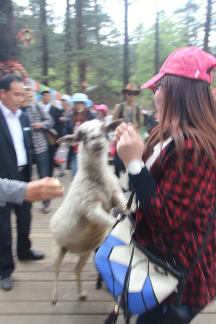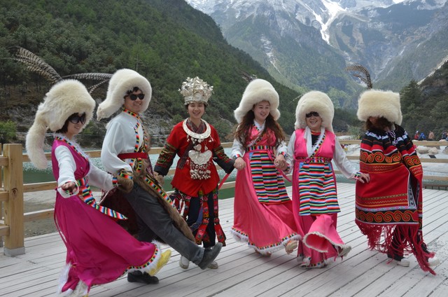 两个小时后,我们换乘景区专车抵达具有“东方瑞士”之称的“玉龙雪山”风景区。乘云杉坪索道抵达海拔3000米的高度,游览玉龙雪山。全山13峰,最高峰5千余米,峰峰终年披云戴雪,银装素裹,分外妖娆。尽管海拔比世界第一高峰珠穆朗玛峰低了很多,但从来没有人登上峰顶,不仅因为它有着亚热带到寒带多种气候,也是由于特定的地质条件造成的。我们在这里游览时,常常有羊叼走游人手上的食物,与人和谐相处,别有一番情趣。