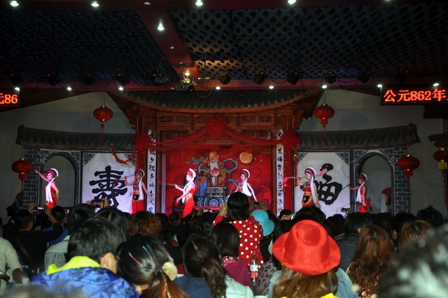 早上七点启程,沿大丽高速公路往回走,至邓川下高速。约十点半,来到十八里铺。在这里欣赏白族歌舞,品尝白族宝茶。歌舞表现的是婚嫁习俗,喜庆欢快。茶是苦甜麻三道,回味隽永。白族人也非常自信,舞台两边贴着一副对联:十八里铺舞影婆娑添妙景,金花故乡歌声嘹亮送宝茶。