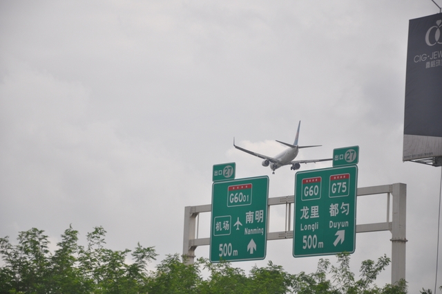 在龙洞堡服务区小憩时,我们近距离观赏到了三架飞机的降落过程,拍到了可贵的瞬间。