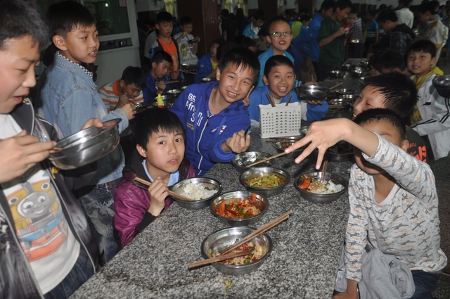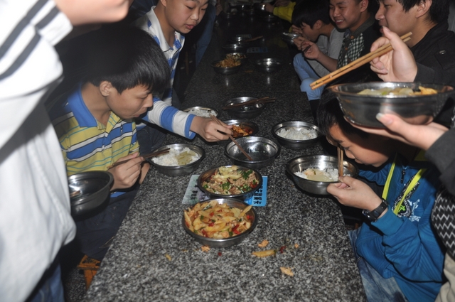 在二食堂就餐的是小学六年级和初中二年级。调研时,小学六年级就餐已毕,重点看了初中二年级的就餐情况。