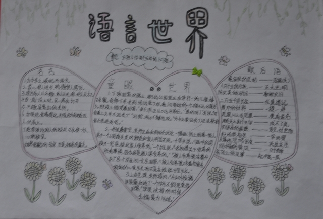 本次活动,旨在丰富学生校园文化生活,营造浓厚的学习氛围,展示五年级学生风采,培养学生动脑、动手能力,激发学生热爱艺术的兴趣和创新能力。全体同学踊跃参加,查资料,设计版面,兴致勃勃。经过各班语文老师的指导和挑选,各班上报10—15份作品参评。