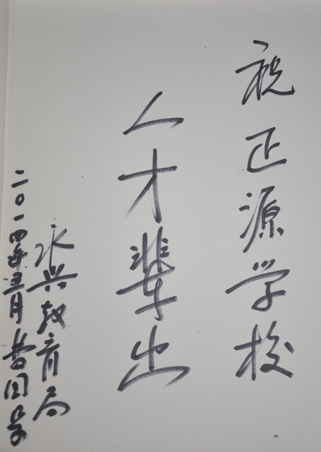 末了,曹副局长欣然为我校题词:祝正源学校人才辈出!