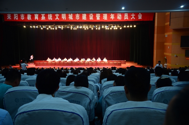 5月23日下午,我校教师230人参加了耒阳市教育系统文明城市建设管理年动员大会,来自全市各学校校长和城区教师代表共1700余人参加了会议。