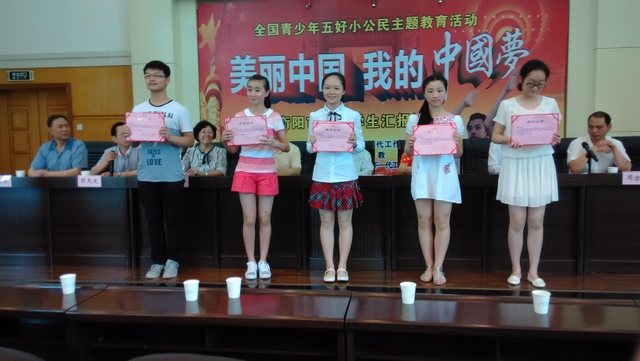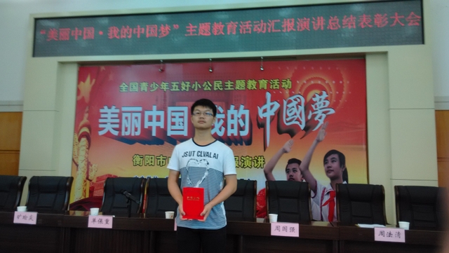5月24日,衡阳市“美丽中国.我的中国梦”主题教育活动汇报演讲及总结表彰大会隆重举行,我校高一65班学生刘慧荣获一等奖。