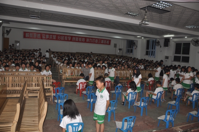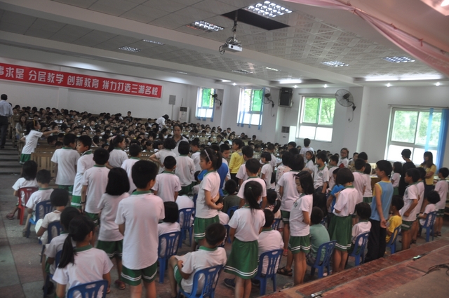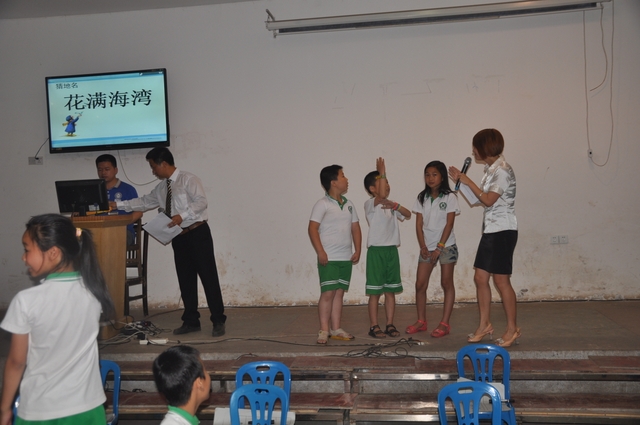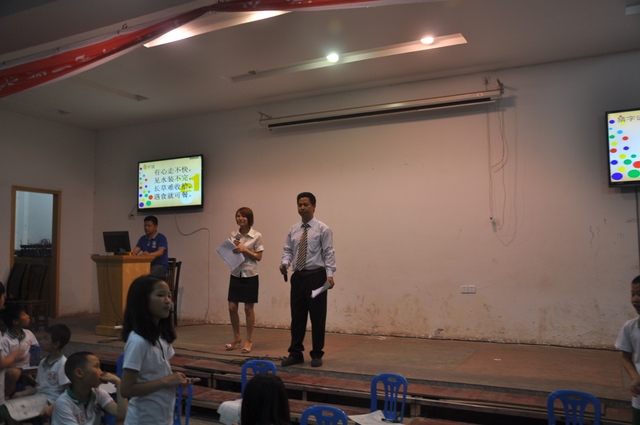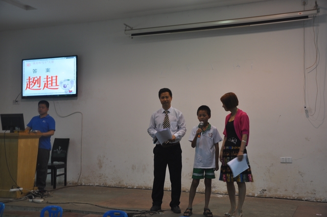 擂台赛分A、B两段学生进行,A段学生擂台赛于5月27日晚6点半举行,B段学生擂台赛于次日下午2点半举行。比赛在一首感人至深的歌曲《父亲》齐唱声中拉开序幕。选手们佩戴牌号上场,个个精神饱满、志在必得。经过紧张激烈的数十轮角逐,两场比赛共产生了20名获奖选手。年级主任王巧云,副主任邓继鑫、梁文白为获奖选手颁发了奖状及奖品。