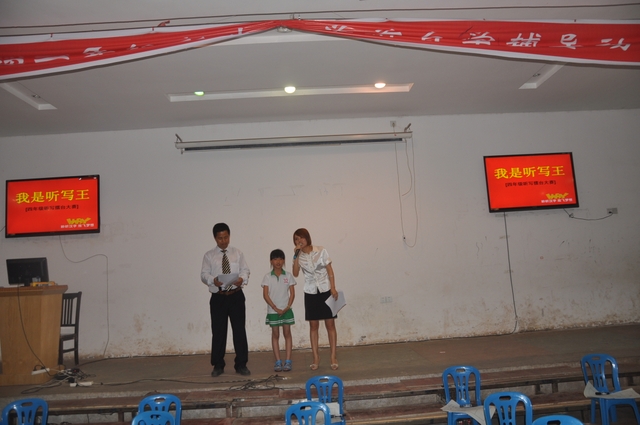 为了丰富校园文化气氛,提高学生的语文素养,增进学生学习语文的兴趣,四年级语文组于5月27日-28日在校报告厅举行了“听写词语,放飞梦想” 第二届“我是听写王”擂台赛。