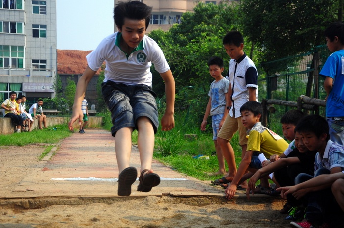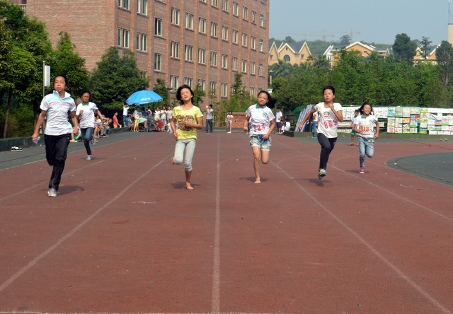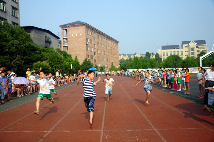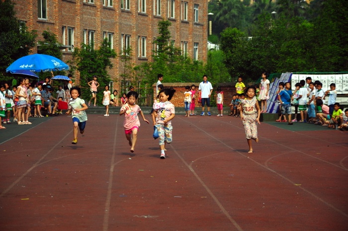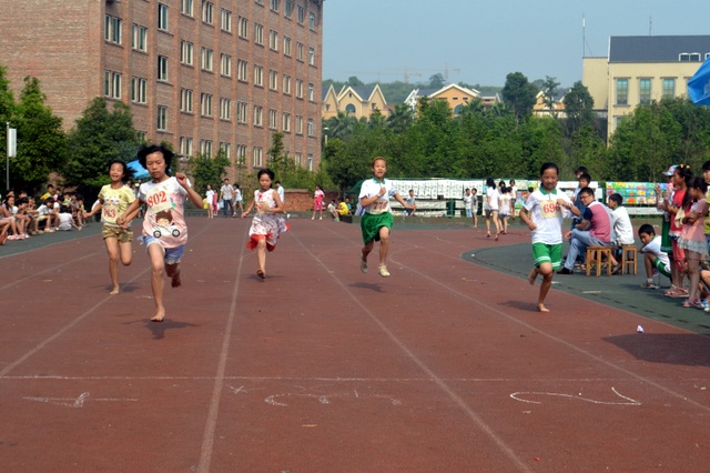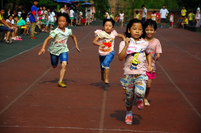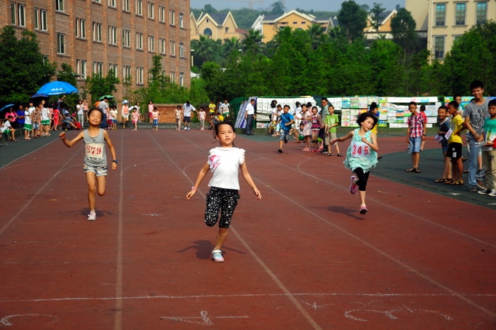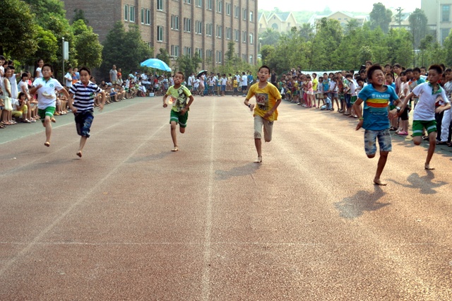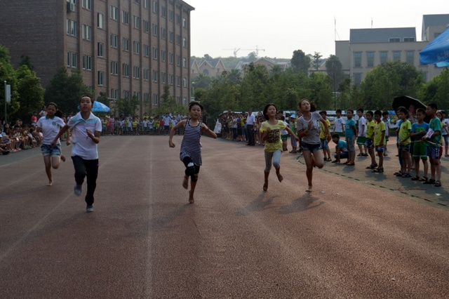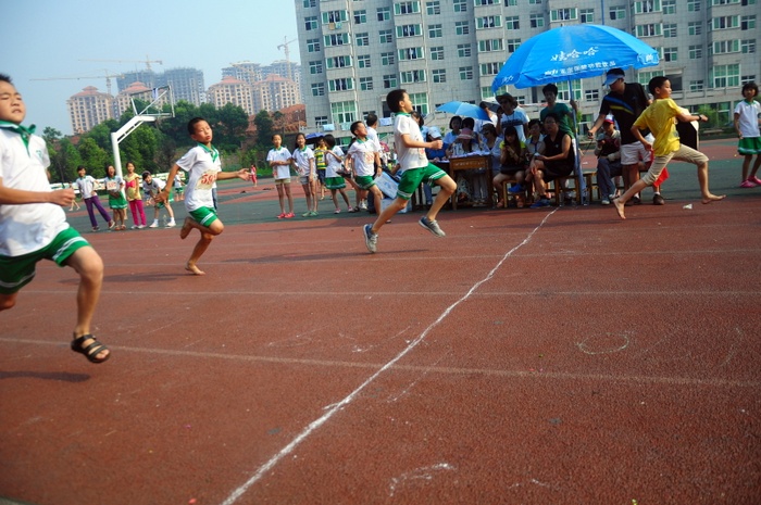 太阳似乎也爱凑热闹,明亮得有点过分,但是这并不影响小运动员们努力夺取第一名梦想的激情。瞧,50米、200米赛场上他们奋勇向前,无论是光脚的,还是穿鞋的,个个如脱缰野马,奔突而去。此时,女运动员们也尽洗往日的温柔,她们也“动若脱兔”,额头上、脸上、甚至是浓密的头发里也闪耀着晶莹的汗珠!——梦想闪闪亮!向着自己的梦想进发吧!