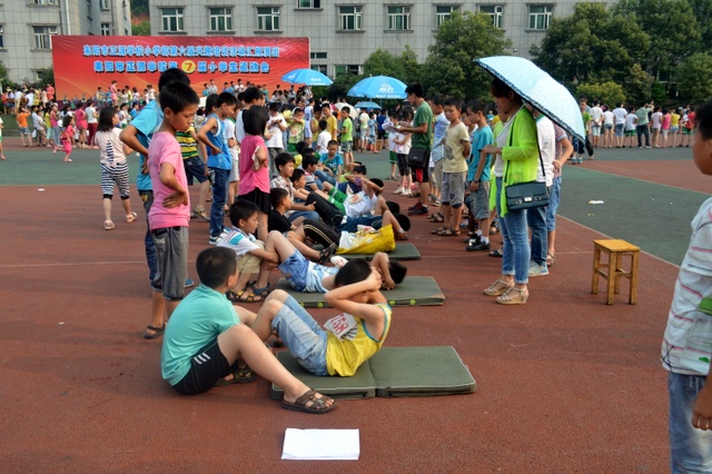 再把镜头对着仰卧起坐的赛场吧:只见四年级雷嘉欣鼓着腮帮,咬着牙,余晖下虽涨红着脸但仍在快速地做着仰卧起坐。——梦想闪闪亮!向着自己的梦想进发吧!