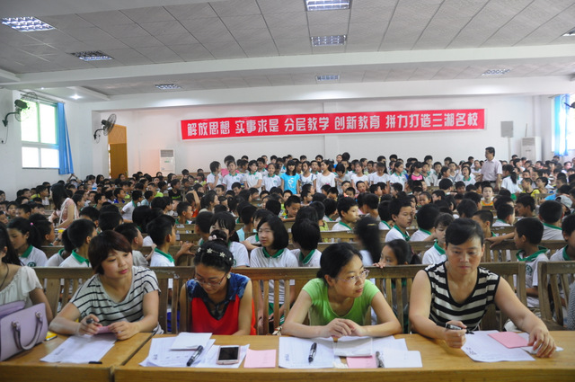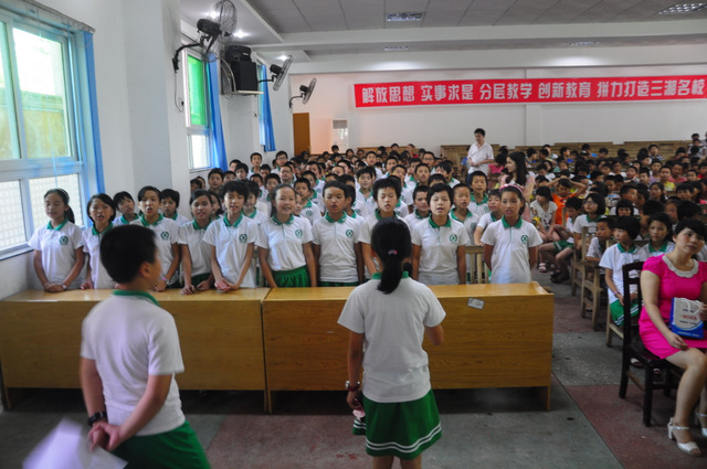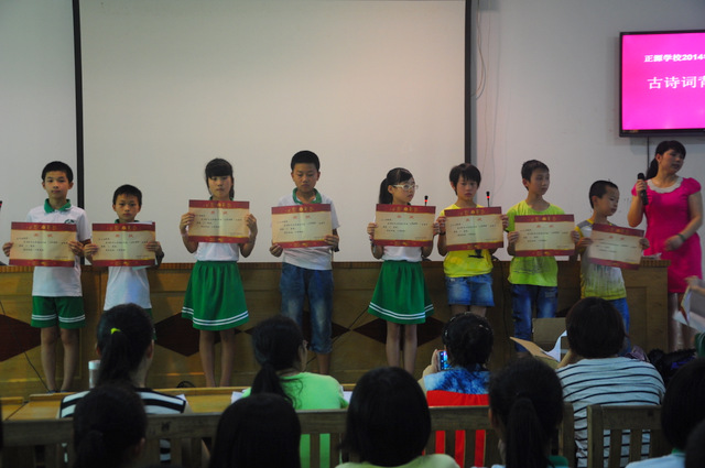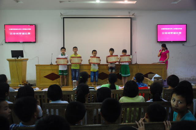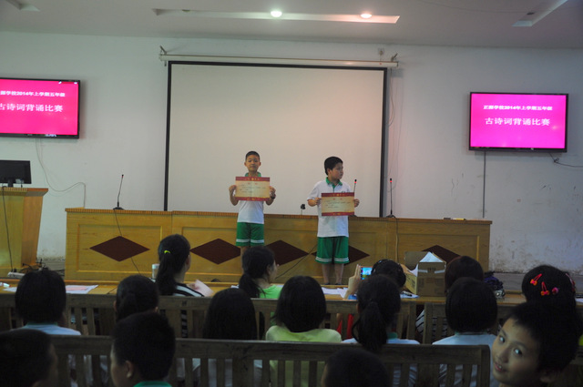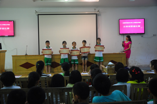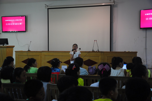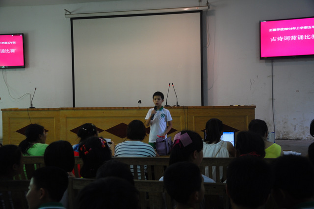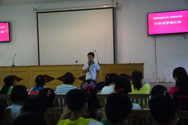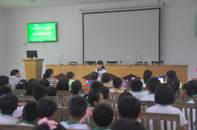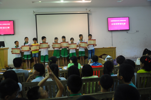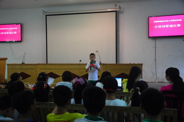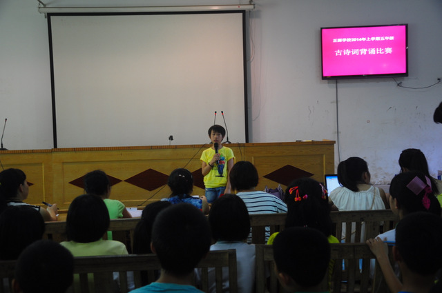 6月26日下午,小学部五年级古诗词背诵比赛在报告厅举行。