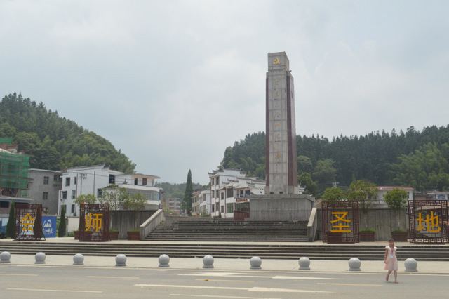 黄洋界保卫战“星星之火可以燎原”英雄纪念碑 全体党员在纪念碑前重温入党誓词