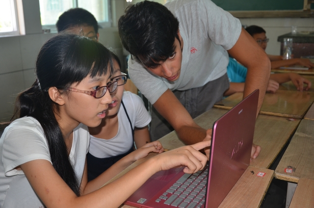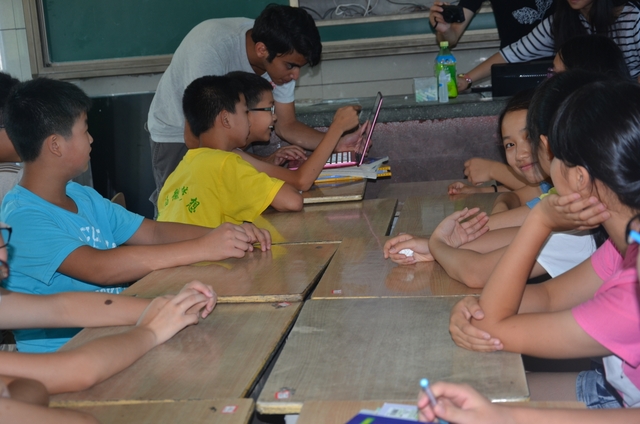 今天是开营后的第一天,国际志愿者们“各显神通”,尽量让我校参加夏令营的同学们尽快喜欢上他们,融入他们,了解他们。夏令营6班的国际志愿者Fahand 给自己取了一个很搞笑的中文名字“法海”,引得同学们捧腹大笑。他自己丈二和尚摸不着头脑。当我国志愿者解释说这是我国影片《白蛇传》中的一个反面人物时,他也忍不住和同学们哈哈大笑起来。为了激发同学们的学习兴趣,“法海”在自己的电脑中显示出一幅地图,让同学们找找他的祖国,他的家乡。