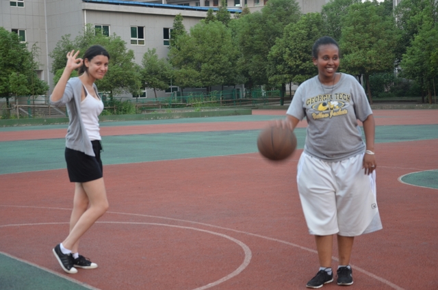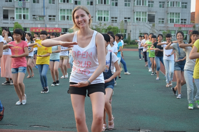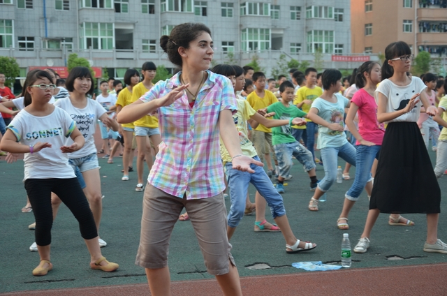 下午,所有国际志愿者和参加夏令营的同学们在操场一起学习中国的太极拳。虽然动作不规范,但大家也学得非常认真。外籍志愿者的滑稽动作,为大家带来了欢声笑语。