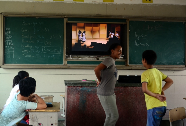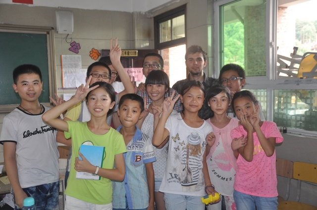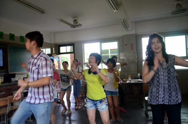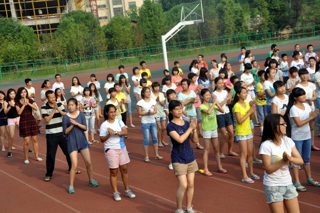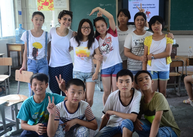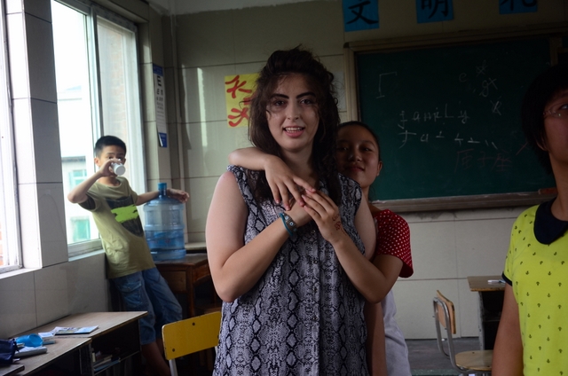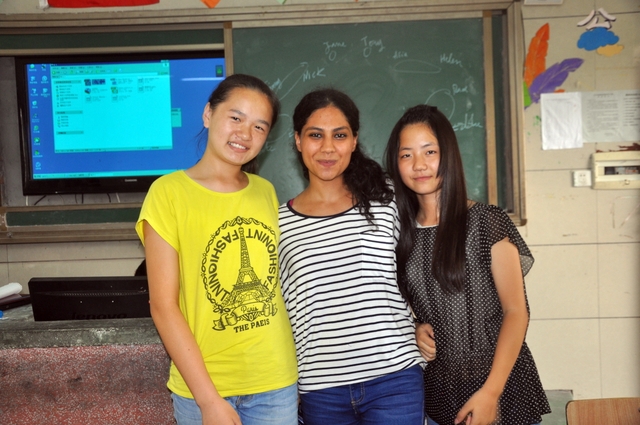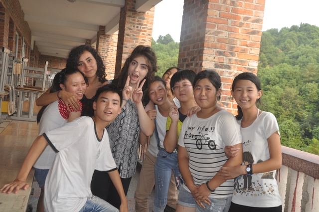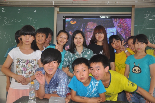 1班的欧阳书婷和尹慧娟同学忙着和摩洛哥的Houda合影留念;3班的欧阳慧和李诗诗忙着和台湾的刘又豪合影留念;4班和13班的同学们则分别急着要和自己班上的志愿者Vivi(印尼)、李祥瑞(四川大学)以及Dilara(土耳其)、Panda(中国的陈亦成)照集体照,以便能留下永久的回忆。