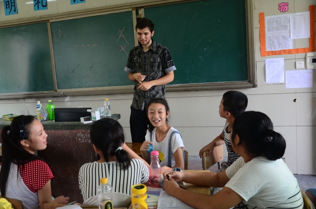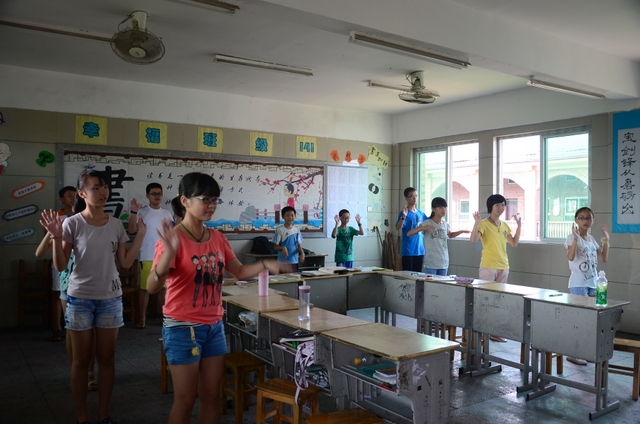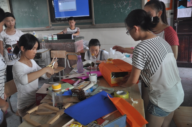 心爱着自己学生的志愿者们也”坐立不安起来”。吃完晚餐,距离上课时间还有半个小时,志愿者们就来到了办公室或者教室,有的忙着准备明天闭营仪式的节目,有的忙着给同学们留言、留联系方式。更有一部分志愿者坐校车到超市为同学们准备礼物去了。
