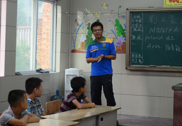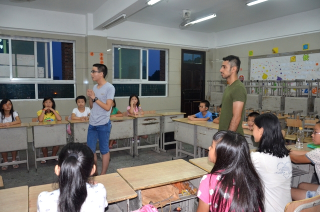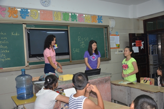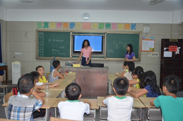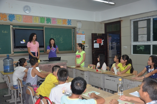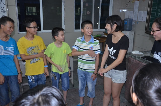 下午3点,各位中外志愿者们纷纷来到自己的班级,与志愿者老师进行热情的交流与沟通。晚上的“破冰游戏”更是一个增进同学友谊和师生感情的有效方法。通过游戏,孩子们都能克服羞怯的心理,大方地介绍自己,许多营员都是用英语来秀出自己的风采。在一片欢声笑语中,大家分享着快乐,传递着幸福。