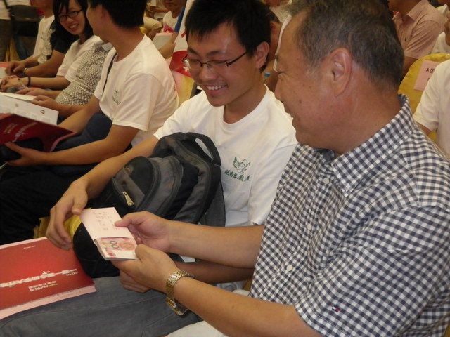 在会上,全省50多个县(区)506名寒门学子成功实现了与自己的爱心人士或爱心企业的爱心结对。我校寒门学子王晓荣、龚源、蒋道元、龙梅录、伍毅杰等17人在现场得到了与自己结对的爱心人士的首期助款5000元。这些爱心人士见到自己结对寒门学子后或相拥而抱,或寒虚问暖,或递名片留电话,或拍照留念,或嘱以希望和理想。。。。。。